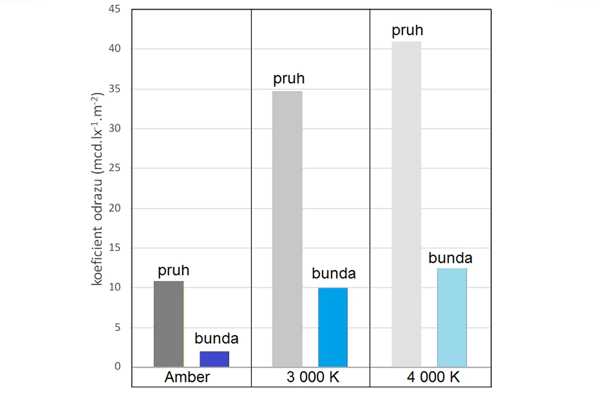 Obr. 1 – Noční zastavovací dráhy Obr. 2 – Nárůst chyb v případě použití sodíku vs. Halogenid v závislosti na adaptačním jasu